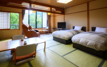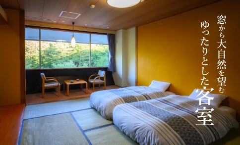 お風呂ページ磐梯朝日国立公園内に位置し、全ての窓から四季の自然を眺める事が出来ます。和室、洋室、和室ベッドなど滞在スタイルに合わせた部屋タイプごお選びください。